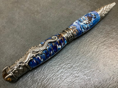 The pen body is hand turned from a crosscut piece of a reclaimed Wild Turkey bourbon barrel (white oak) stave. The crosscut adds a beautiful pattern and depth. This pen can be used with either disposable fountain ink cartridges, or an ink pump (included) for use with an inkwell.